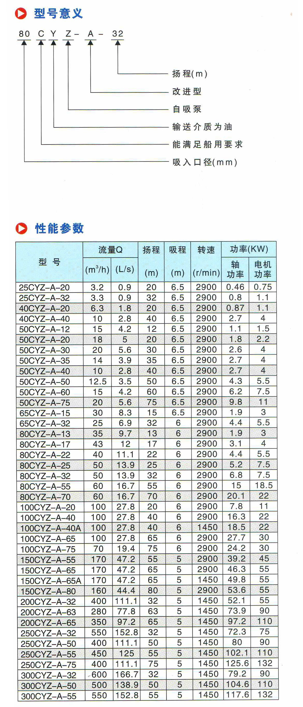 水泵參數(shù)說明